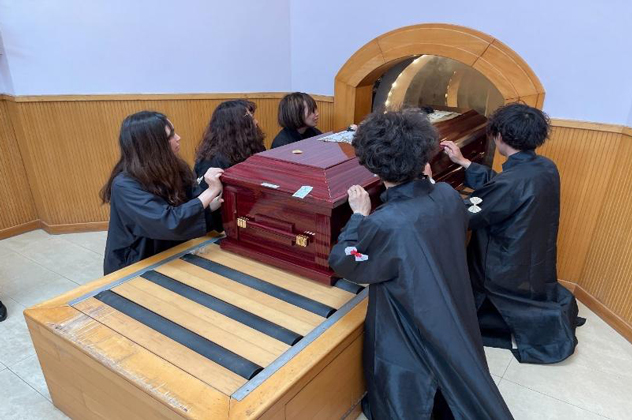 瞻仰後,由工作人員引導大殮蓋棺儀式,並備有高級靈車接送尊體至火化場。